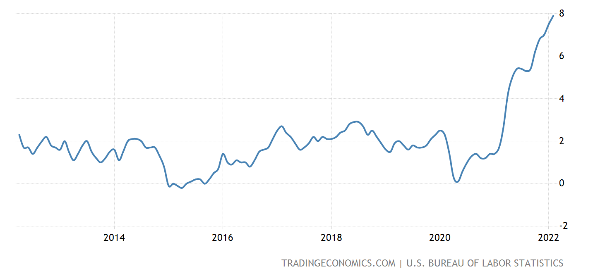 Pushing into March, we are seeing the annualized rate of inflation continues to remain elevated, averaging close to 8%. As you can see in the chart below, this is a significant departure from the inflation rates of the last 10 years.