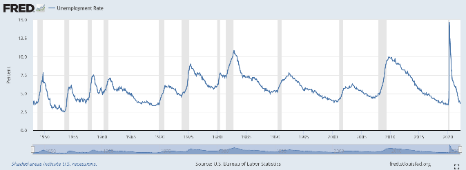 Despite these economic headwinds, we are currently seeing unemployment drop to pre-pandemic levels. The labor market added an additional 431,000 jobs in March, bringing the unemployment rate down to 3.6%. Over the last 6 months, the US has added on average 600,000 jobs per month. Which is remarkable, given the near 15% unemployment rate of 2 years ago: