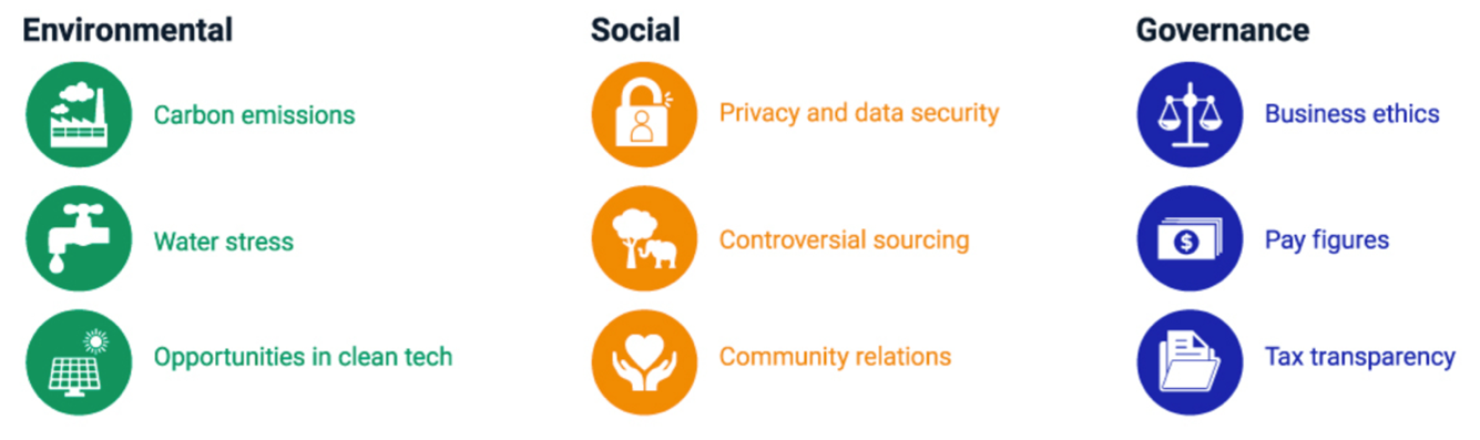 With 20/20 hindsight, there is some clarity as to why ESG edged out conventional. Below are some examples of a few focuses in each category, and it feels like every one of these came up in the news cycle at some point over the last 12-18 months. Companies that are unable to create/invest in clean energy or have negative social and governance impacts can be screened out entirely.